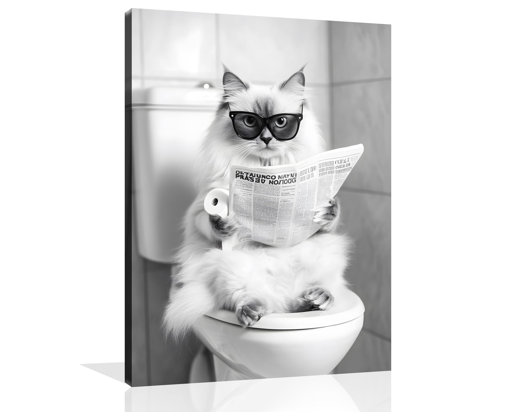 Cat Bathroom Canvas Wall Art Funny Animal Bathroom Wall Art Ragdoll Cat on the Toilet Bathroom Painting