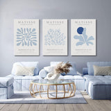 Matisse Canvas Wall Art Blue Abstract Poster Prints Framed Set of 3 Plant Leaves Aesthetic Pictures Minimalist Flower Market Painting