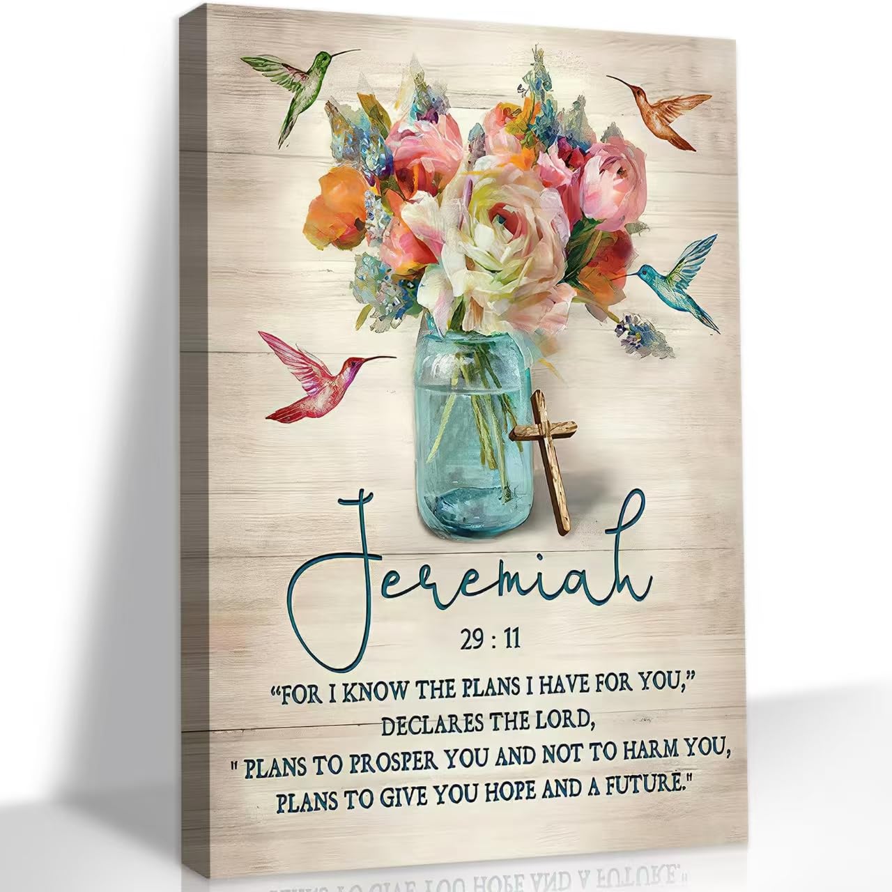 Scripture Canvas Wall Art Christian Wall Decor Painting Print Colour Farmhouse Hummingbird Picture