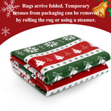 Christmas Area Rug is made of high quality polyester with printed pattern surface. The exquisite overlocked technique, beautifully printed patterns and non slip rubber backing make this floor rug more comfortable, durable and attractive, whic is perfect for living room, bedroom, kitchen, entryway, laundry room, office, etc. We provide comfort for lovers of Christmas rugs. Note: Please allow 0.5 inch data deviation due to manual measurement and the pictures may not reflect the actual color as different monitor display and light effect. The rug is folded up when it's packed and might arrived with temporary creases but it will not affect use. You can use heavey objects to flatten it, or filp over then roll the rug up to remove carpet creases.