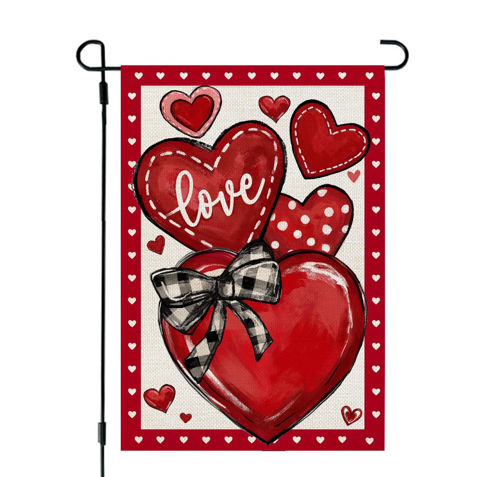 Valentines Day Garden Flag Love Heart 12x18 Inch Single-Side Print Red Welcome Decoration for Outside Yard (No flagpole)