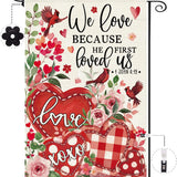 Valentines Day Garden Flag, We Love Because He First Loved us Flags 12x18 Inch Single-Side Yard Flag