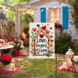Valentines Day Garden Flag Love Begins at Home 12x18 Inch Single-Side Hearts Floral Welcome Decoration