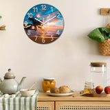 Blue Nautical Beach Wall Clocks Battery Operated Palm Tree Wall Clocks for Living Room 12 Inch Round Glass Silent Wall Clock Non Ticking Sunset Clock