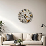 Tempered Glass Wall Clock: Abstract Mosaic with Gold Accents