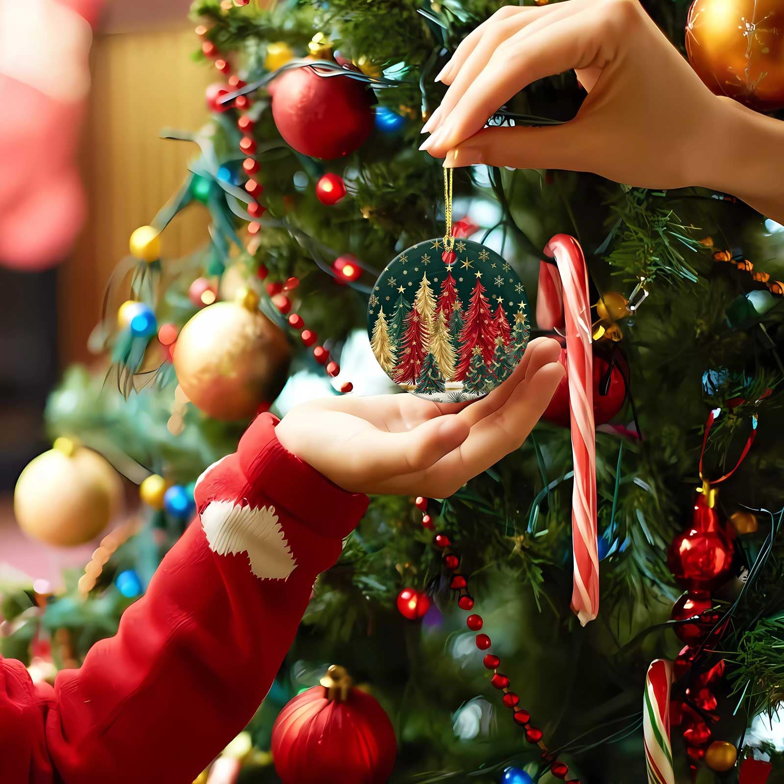 Christmas Tree Forest Ornament Round Ceramic Ornament Star Snowflake Xmas Keepsake for Christmas Tree