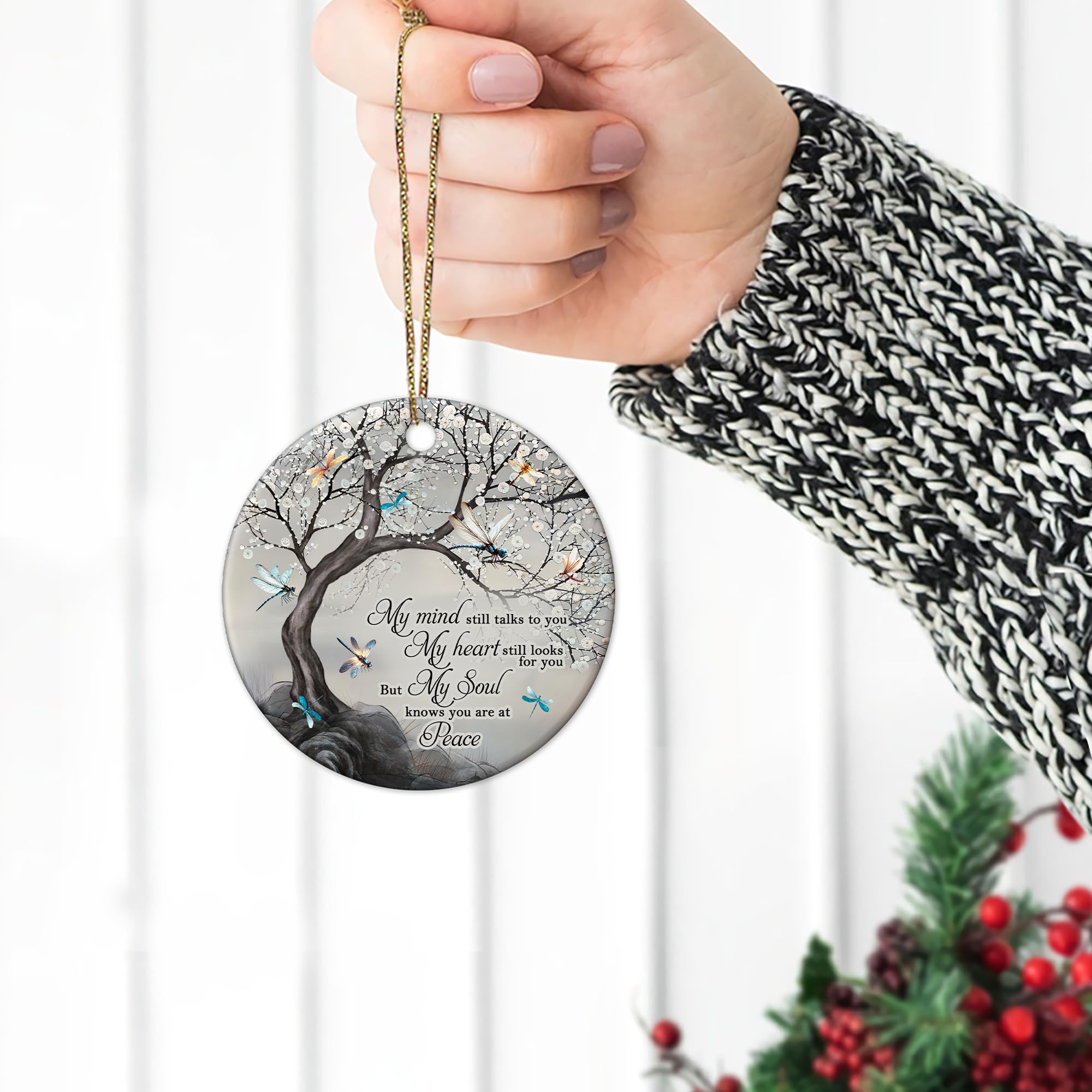 Dragonfly Memorial Ornament - Ceramic Remembrance Keepsake with Tree and Quote - Bereavement Sympathy Gift for Loss of Loved One - 3 Inch Christmas Ornament Memorial