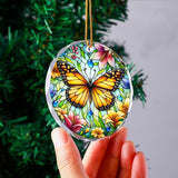 Christmas Ornaments Crystal Hanging Decor, Christmas Tree Glass Hanging Butterfly Ornament for Xmas Gifts