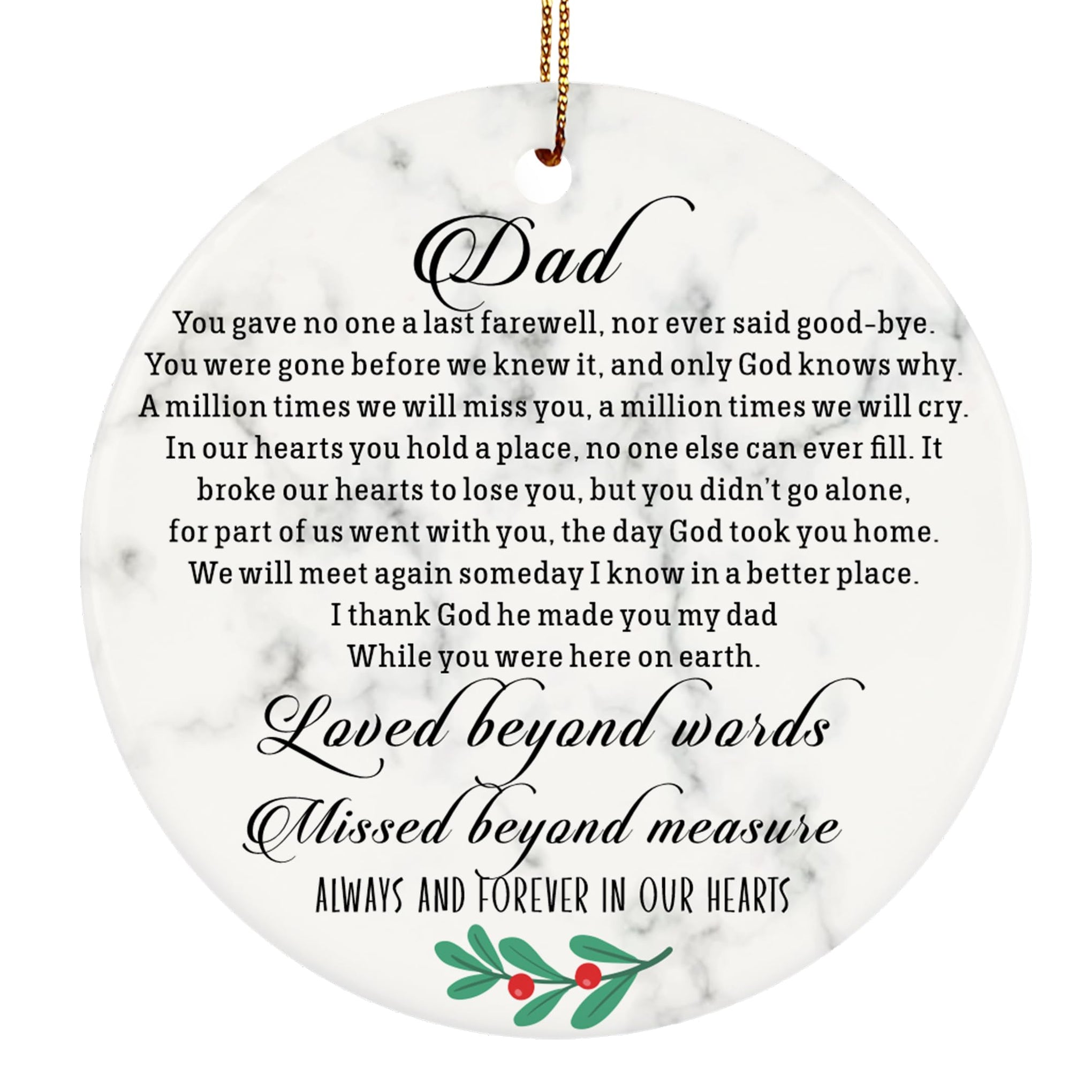 Dad Memorial Christmas Ornament, Bereavement/Sympathy Gift for Loss of a Father, in Loving Memory of Dad Two-Side Printed 3” Ornament for Xmas Tree
