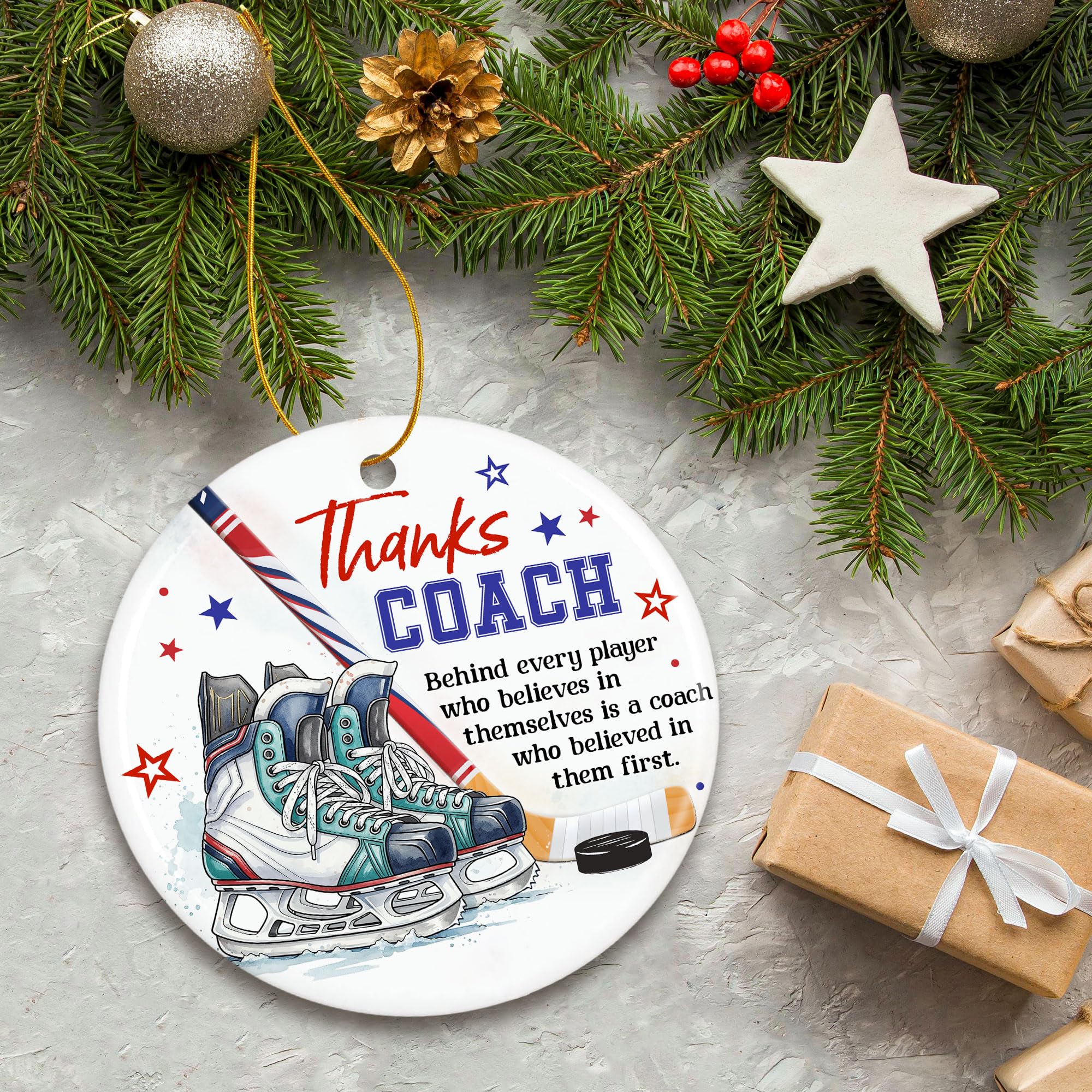 Hockey Coach Ornament 2025 - Coaches Christmas Ornaments for Men and Women - Ice Hockey Coach Gifts - Sports Thank You and Appreciation Gift Ideas - Ceramic Xmas Tree Ornament Decoration
