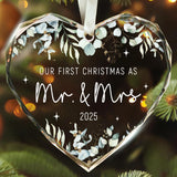 First Christmas Married Ornament 2025 - Wedding Gifts - Mr and Mrs Gifts - Wedding Gift for Couples 2025, Bride, Future Mr and Mrs - Bridal Shower Gift for Married Newlywed - Glass Ornament