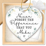 Thank You Gifts for Women, Men - Christmas Appreciation Gifts for Coworkers, Teacher, Boss, Nurse, Employee, Friend - Never Forget The Difference That You Make - Heart Ceramic Christmas Ornaments 2025