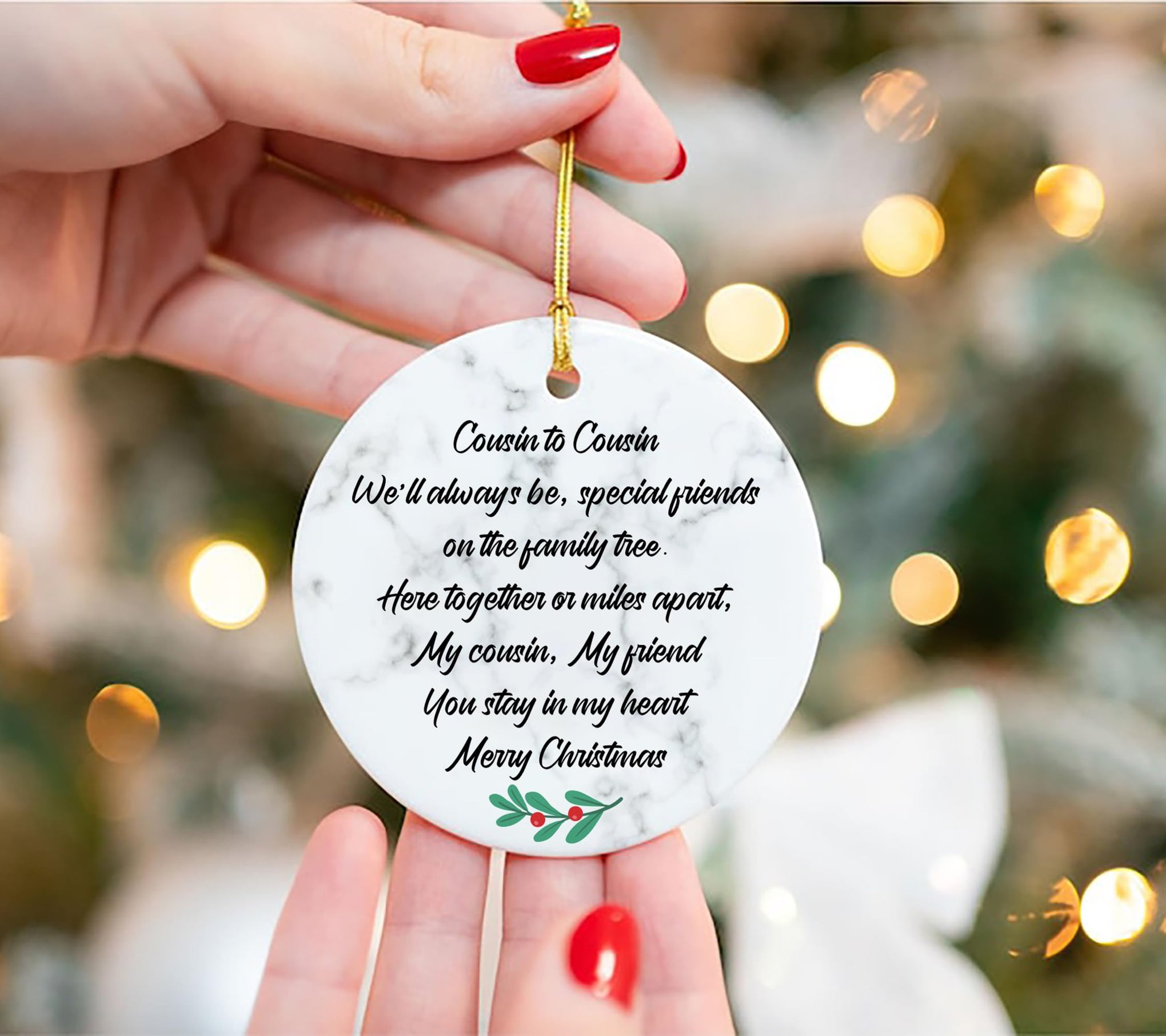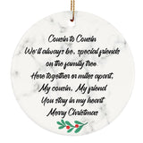 Cousin to Cousin Christmas Ornament, Family Christmas Ornament, Best Cousin Two-Side Printed Ornament, Merry Christmas Holiday Keepsake for Xmas Tree