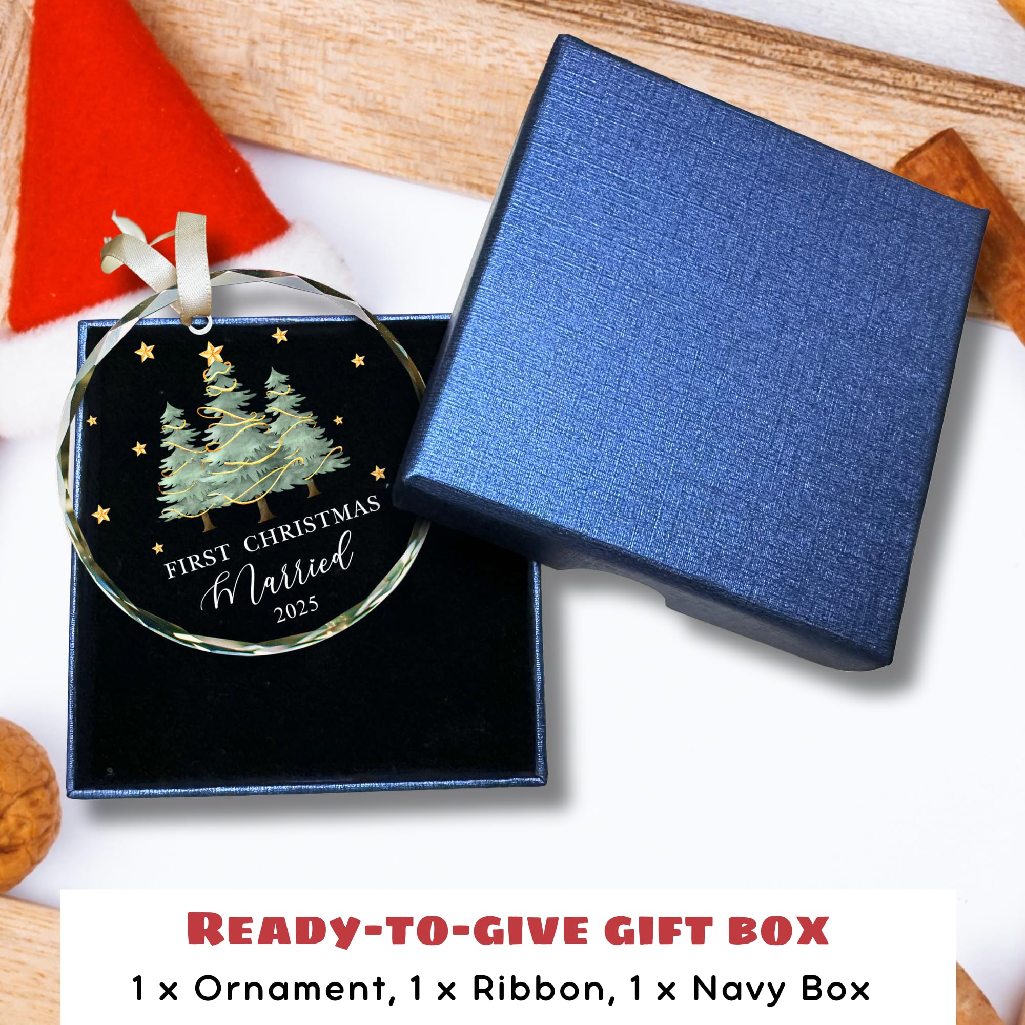 Wedding Gifts - Wedding Gifts for Couples 2025-1st First Christmas Married Ornament 2025 - Married Couple Gift for Bride, Newlyweds - Bride Bridal Shower Gift - Glass Ornament