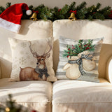 Christmas Pillow Covers 18x18 inch Set of 4, Holiday Winter Outdoor Vintage Snowflake Xmas Snowman Neutral Farmhouse Seasonal Linen Reindeer Decorations for Sofa Couch