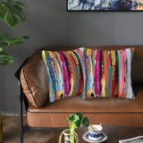 Multicolored Rainbow Abstract Throw Pillow Covers 18x18 in Set of 2, Decor Art Vibrant Pillow Case