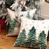 Christmas Tree Reindeer Pillow Covers 18 x 18 Inch Set of 4, Xmas Decorations, Holiday Hello Winter
