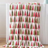 Luxury Velvet Super Soft Christmas Prints Fleece Blanket-Holiday Theme Home Décor Fuzzy Warm and Cozy Throws for Winter Bedding, Couch and Gift, 50 x 60 inch, Ivory Christmas Tree