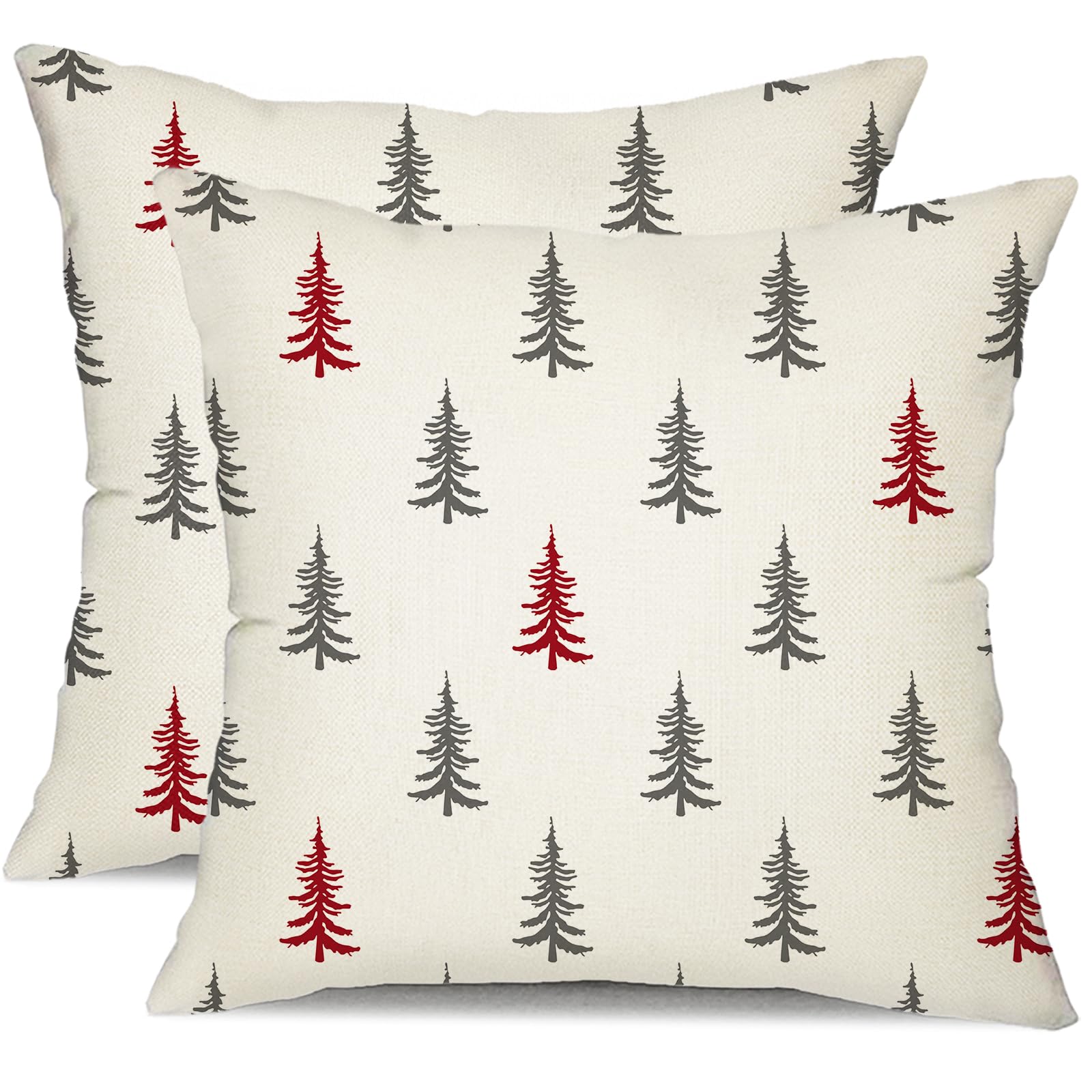 Christmas Pillow Covers 18x18 inch Set of 2 Christmas Tree Decorative Red and Gray Throw Pillow Covers