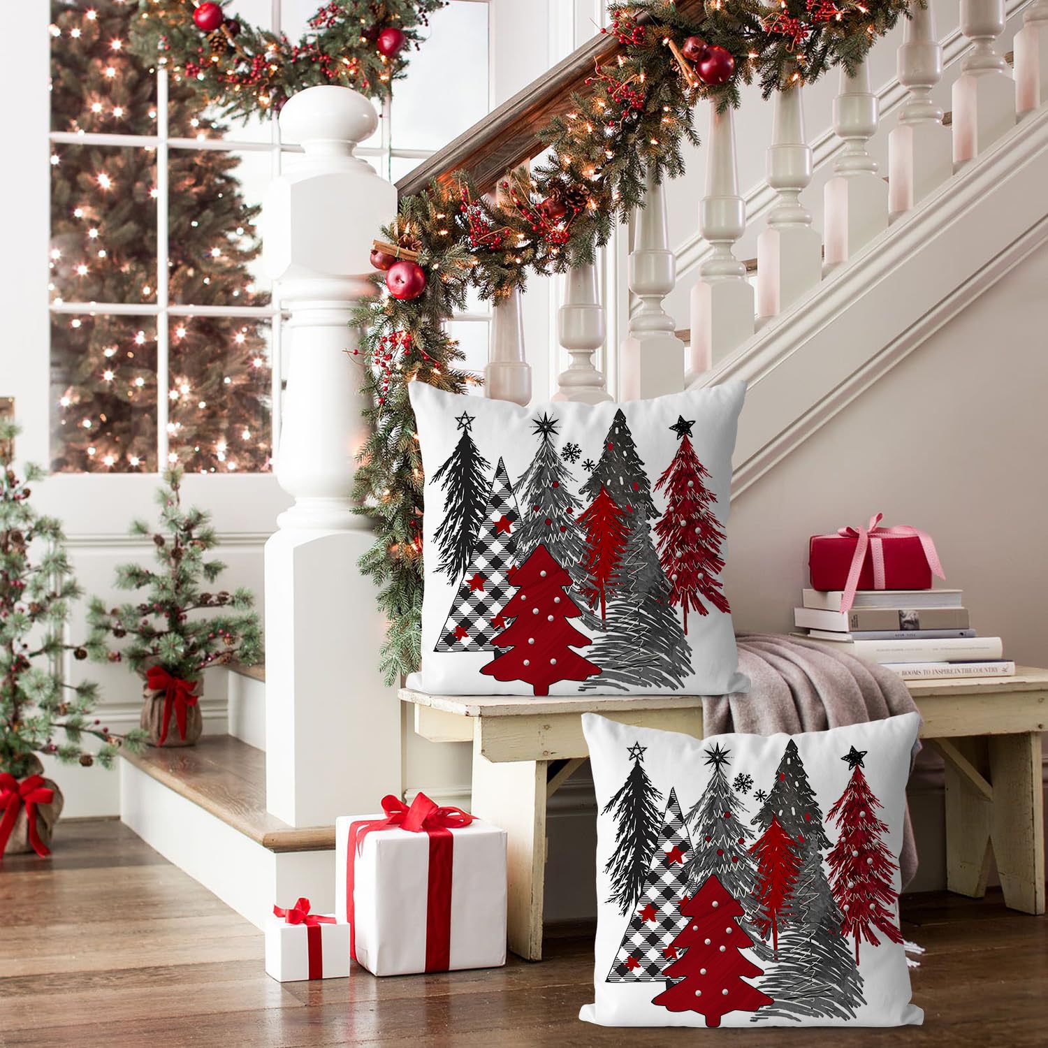 Christmas Pillow Covers 18x18 Inch Set of 2 - Tree Decorative Throw Cushion Cases for Winter Home Decor - Couch Sofa