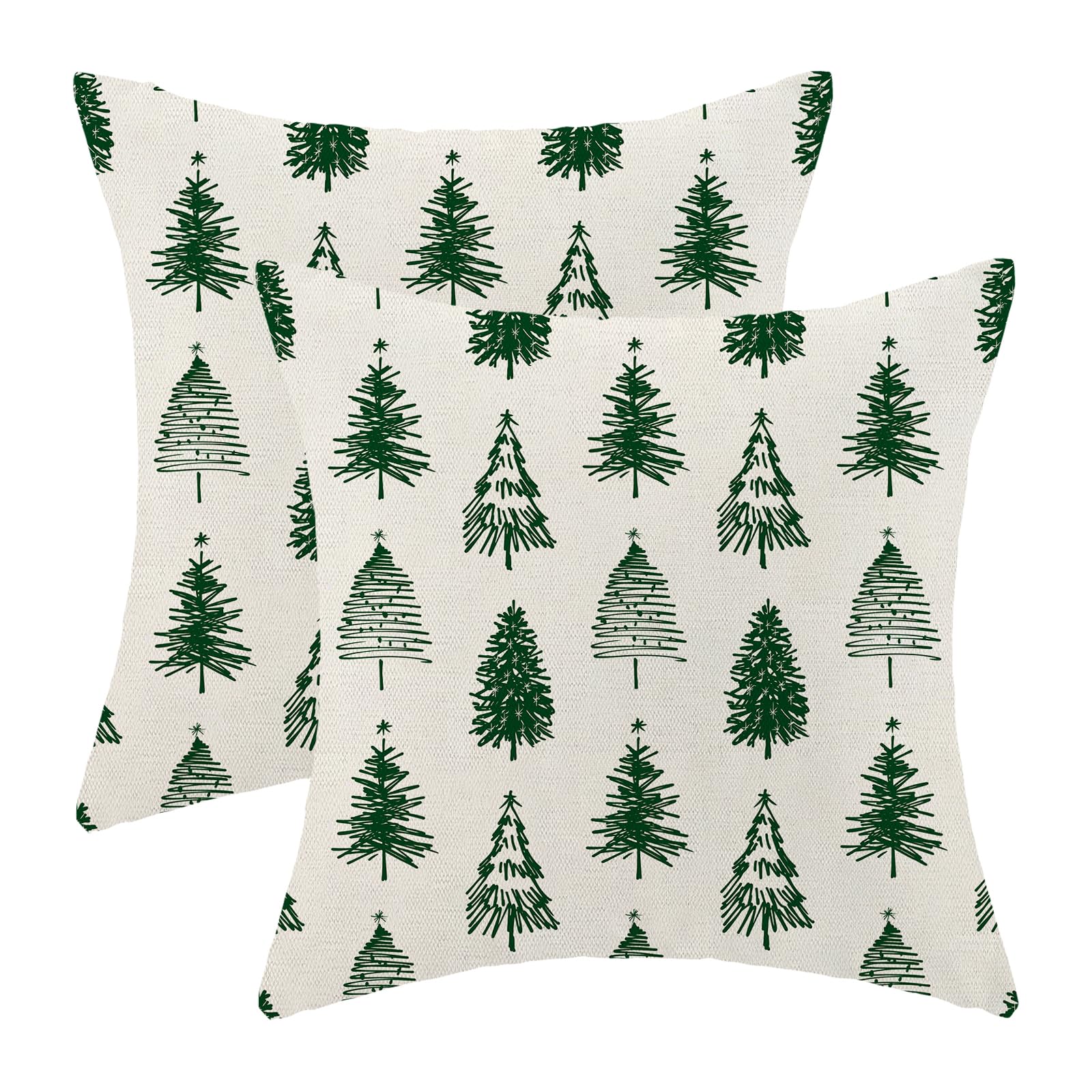 Christmas Pillow Covers 18x18 Inch Set of 2 Green Christmas Trees Throw Pillows Case,Holiday Outdoor Decorative Farmhouse Winter Decor Cushion Covers for Home Sofa Bed Couch