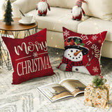 Merry Christmas Let It Snow Love Snowman Red Throw Pillow Covers, 18 x 18 Inch Xmas Tree Holiday Cushion Case Decoration for Sofa Couch Set of 4