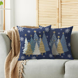 Christmas Pillow Covers 18X18 Set of 2, Blue White Gold Xmas Tree Snowflake Blue Winter Holiday Decorative Throw Pillowcases Outdoor Farmhouse Seasonal Cushion Cases Couch Sofa Bed Decor
