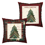 Merry Christmas Pillow Covers 18x18 Set of 2 Red Classic Checkered Green Xmas Tree