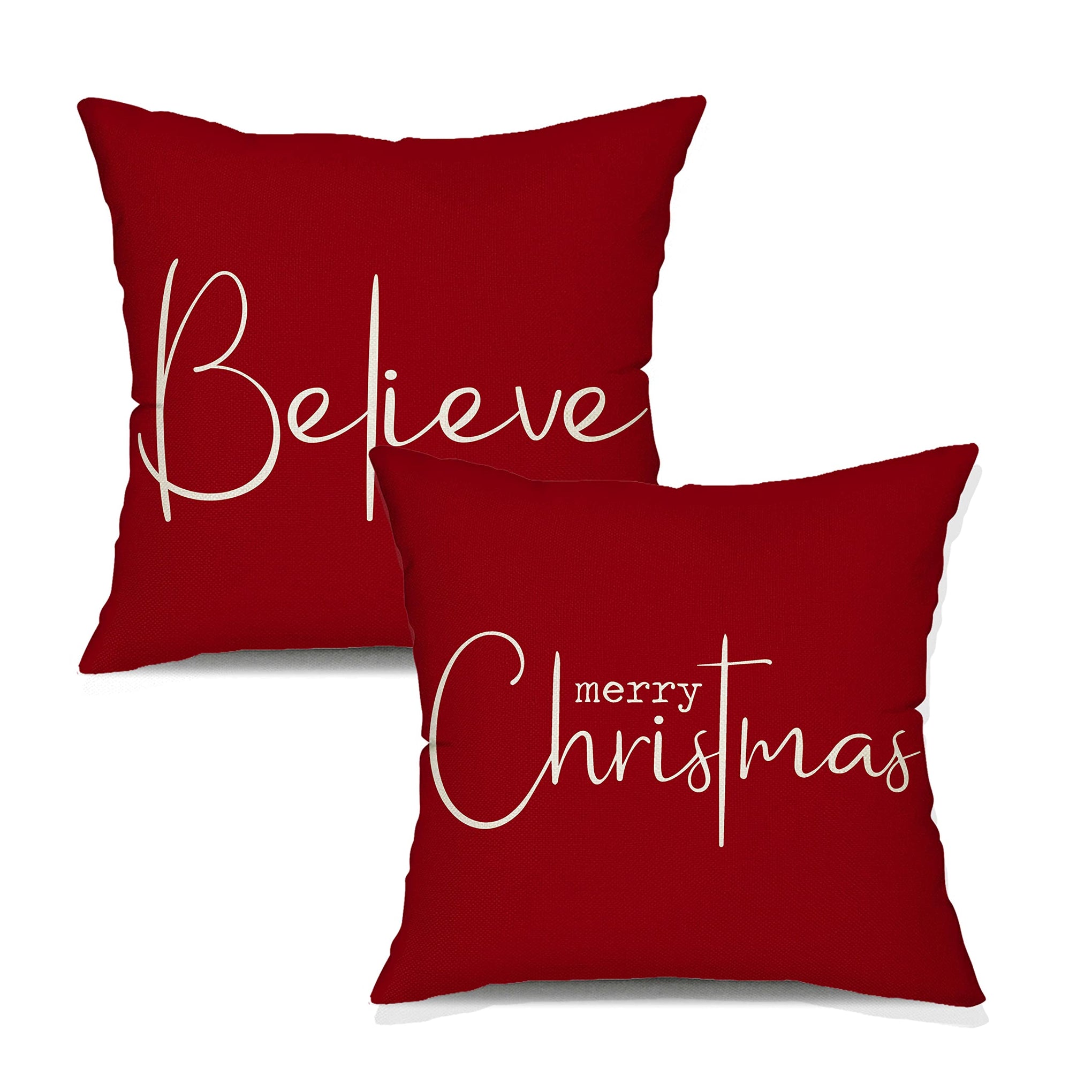 Christmas Throw Pillow Covers 18x18 Inch Set of 2 Merry Christmas Farmhouse Decorations Believe Holiday Decor