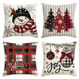 Winter Snowman Joy Snowflake Christmas Throw Pillow Covers, 18 x 18 Inch Red Xmas Tree Winter Holiday Buffalo Plaid Cushion Case Decoration for Sofa Couch Set of 4