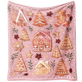 Christmas Throw Blanket for Couch 60x50,Pink Winter Holiday Festival Cute Xmas Gingerbread House Trees Blankets