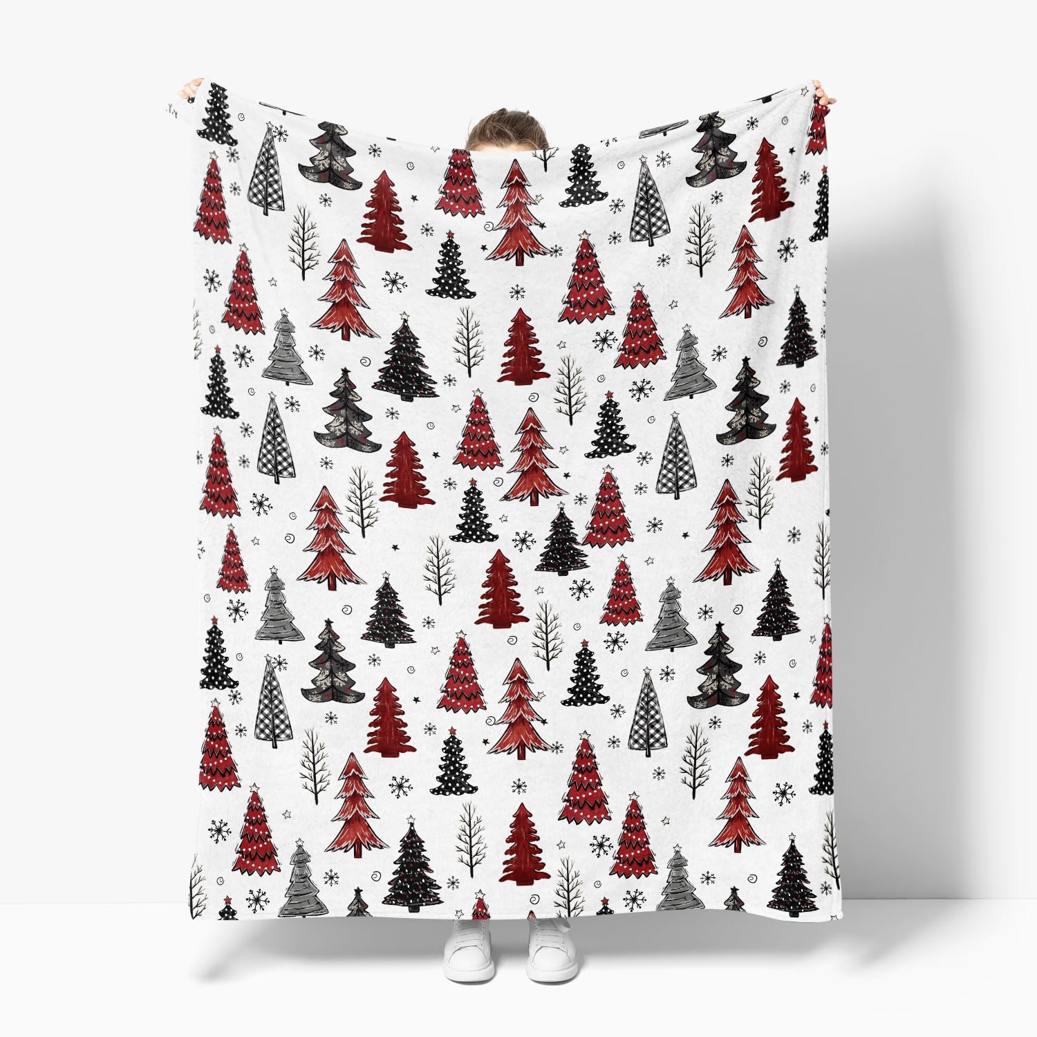 Christmas Flannel Blanket Throw, Christmas Trees Buffalo Plaid Dots Soft Fuzzy Plush Cozy Fleece Blankets