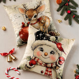 Christmas Throw Pillow Covers 18x18 Set of 4,Linen Pillow Cases Vintage Snowman Santa Deer