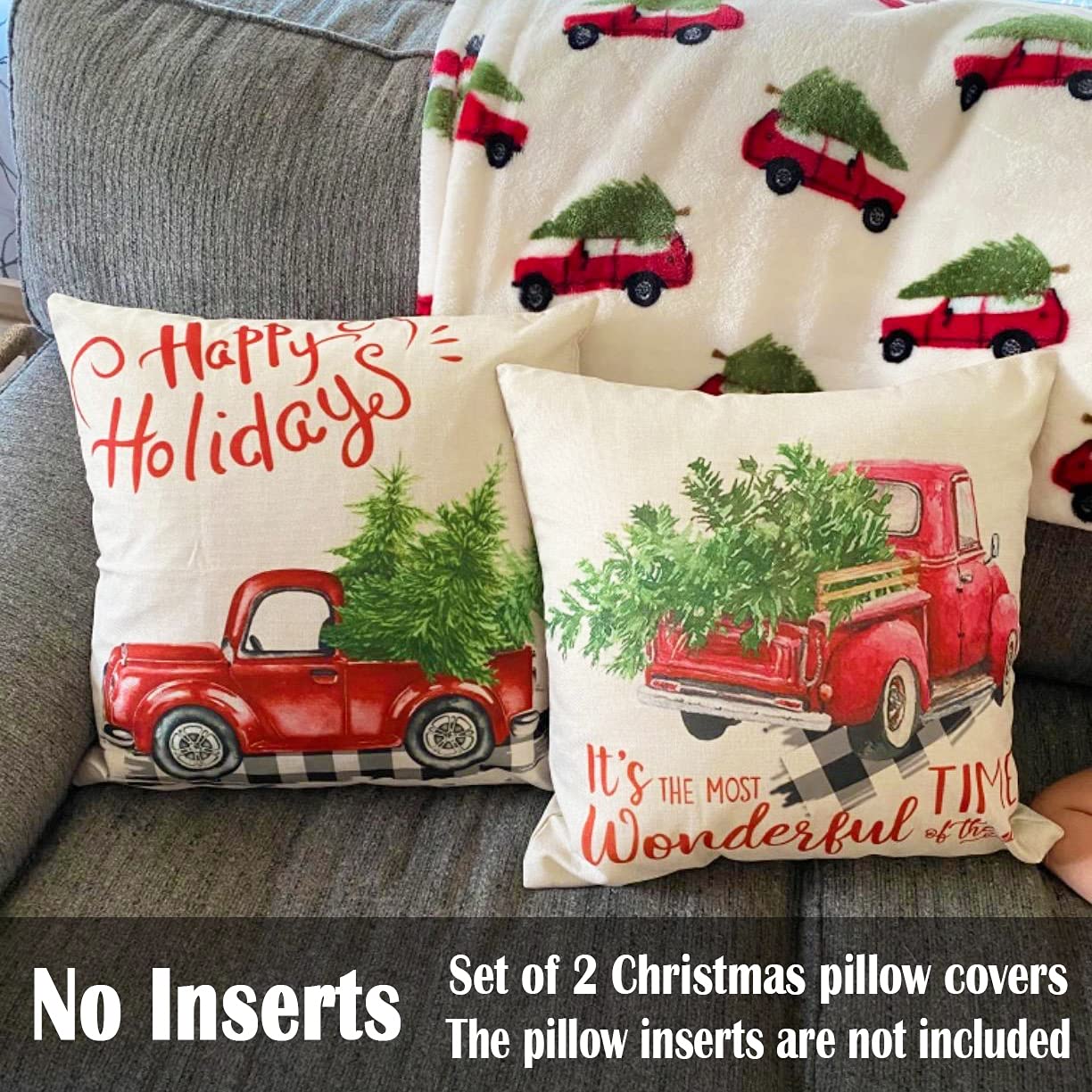 Red Truck Christmas Decor Outdoor Christmas Throw Pillow Covers 18x18 for Home Car Office, Set of 2