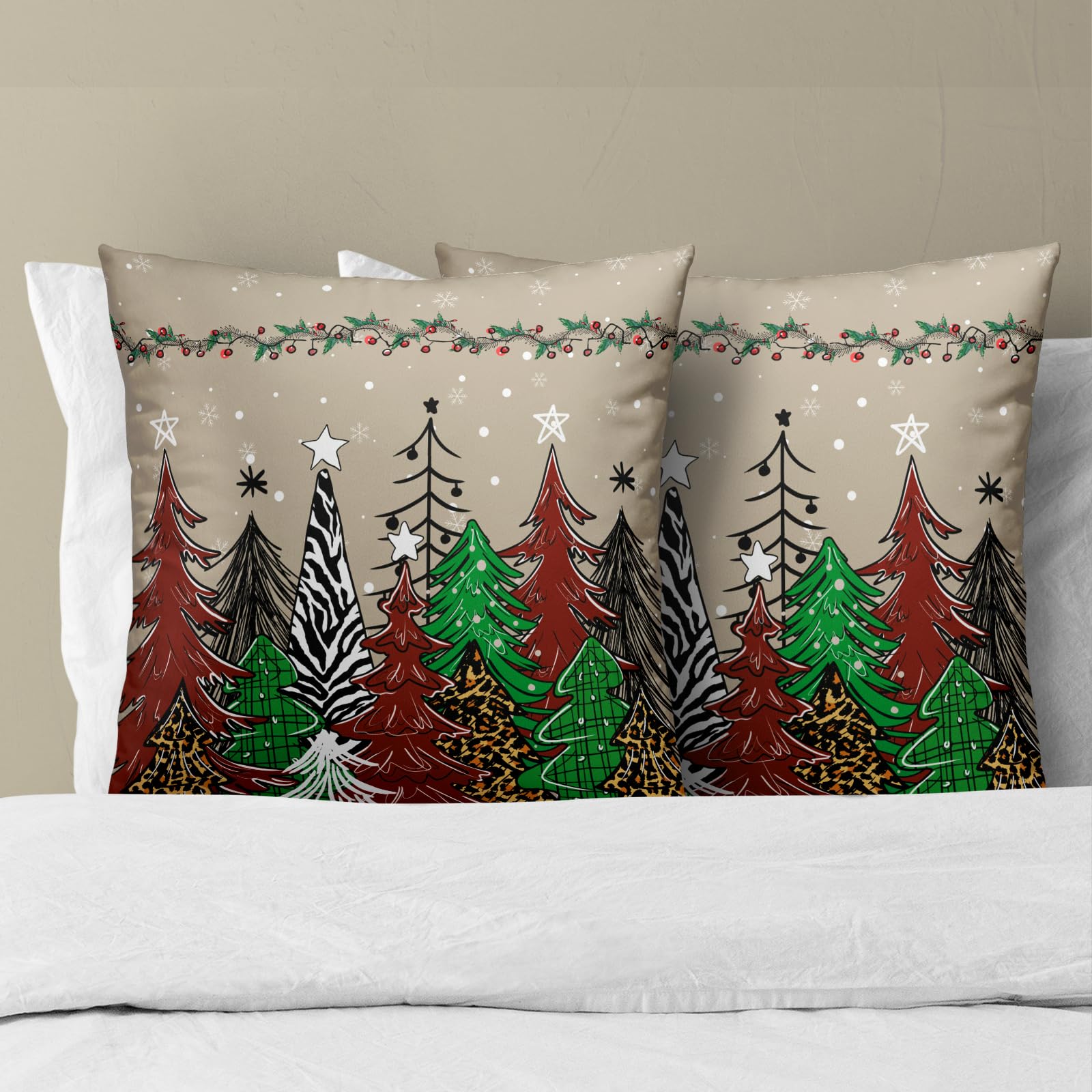 Christmas Xmas Tree Pillow Covers Brown Throw Pillow Winter Snowflake