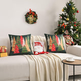 Decorative Christmas Tree Pillow Covers 18x18 Inch Set of 2, Christmas Green Linen Cushion Cases, Winter Christmas Throw Pillows