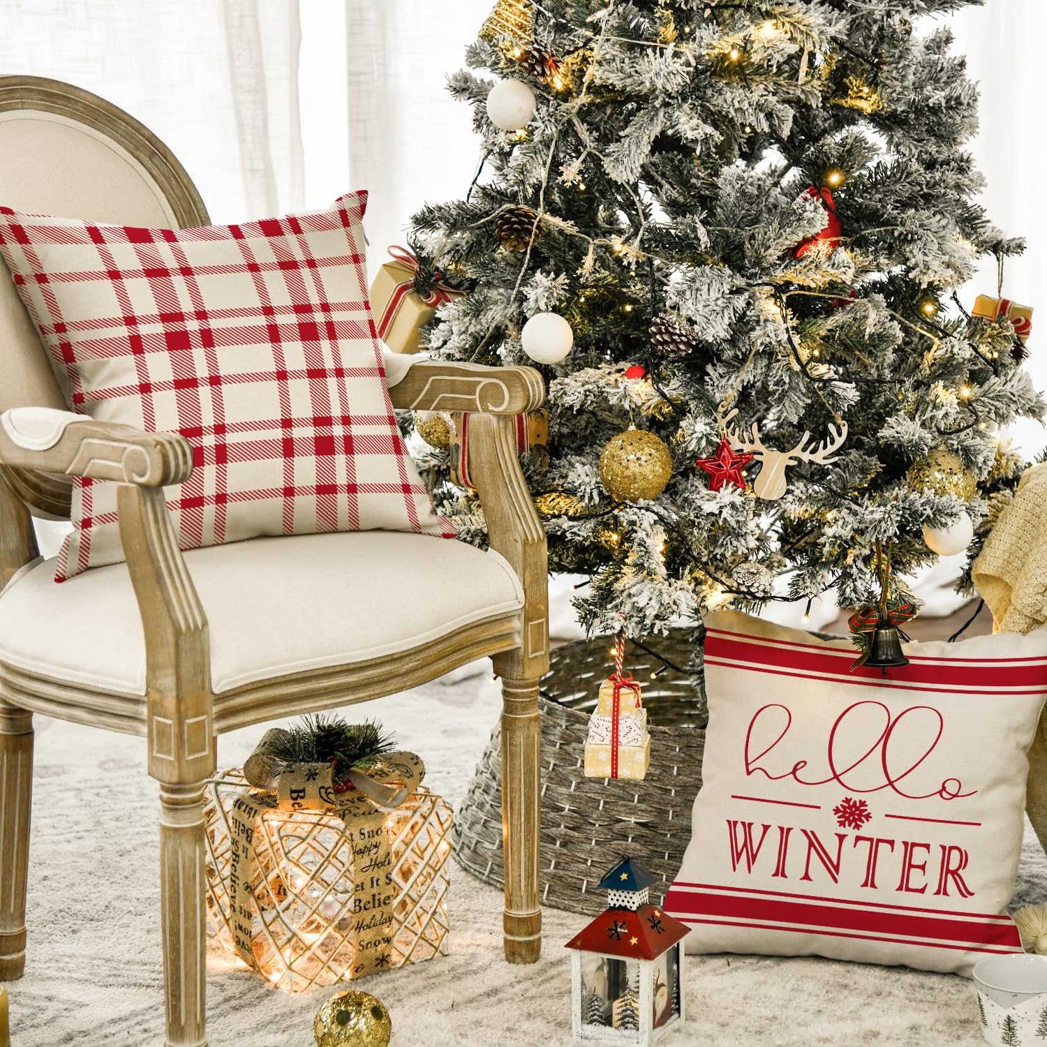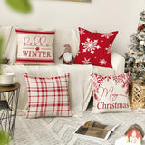 Merry Christmas Hello Winter Buffalo Plaid Snowflake Red Throw Pillow Cover