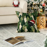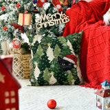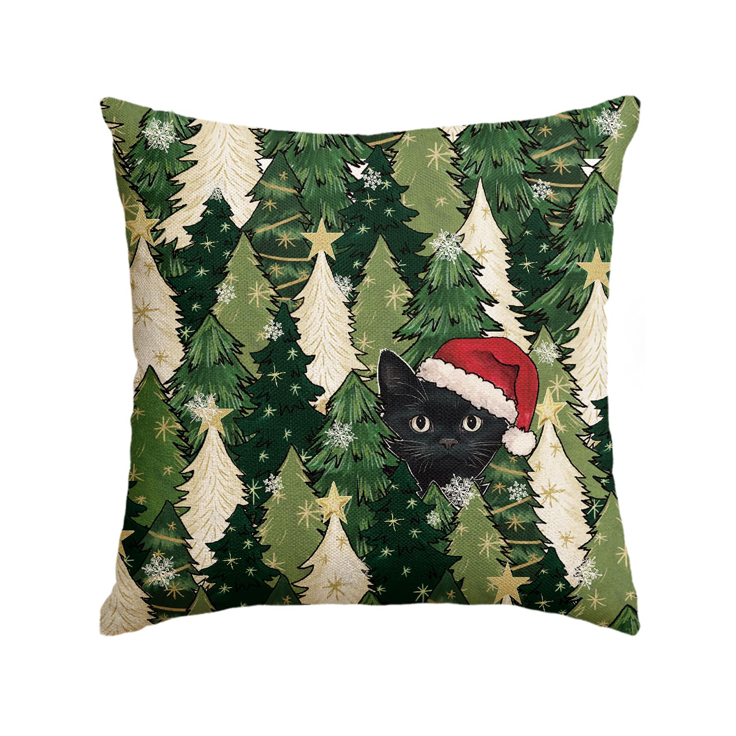Christmas Trees Stars Black Cat Throw Pillow Cover, 18 x 18 Inch Snowflake Seasonal Winter Holiday Green Cushion Case Decoration for Sofa Couch