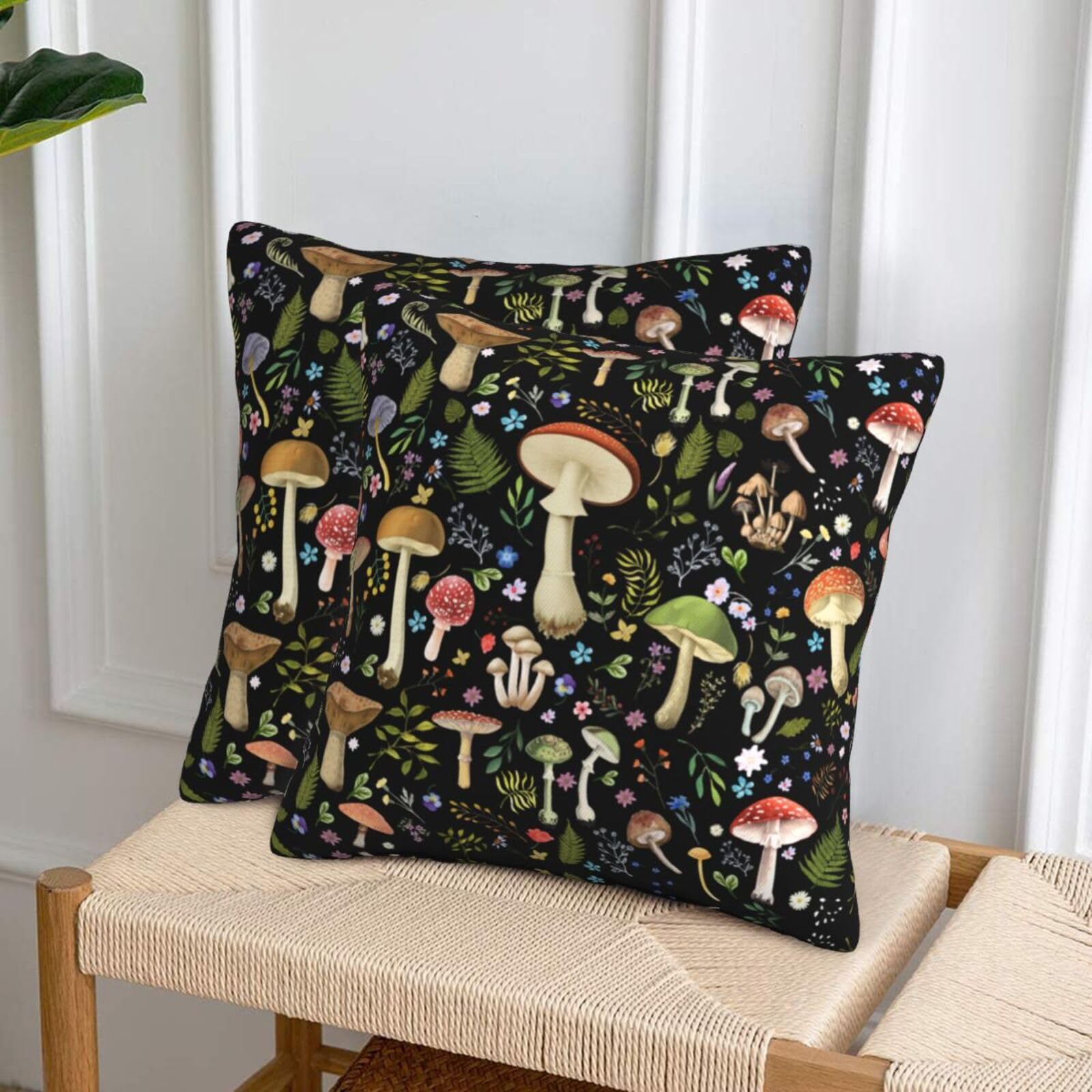 Mushroom Flower Farmhouse Throw Pillow Covers 18x18 in Black Pillow Case Soft