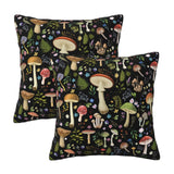 Mushroom Flower Farmhouse Throw Pillow Covers 18x18 in Black Pillow Case Soft Outdoor Pillow case Cushion Covers Set of 2 for Sofa Bed Bedroom Car Chair Living Room Home Decorative