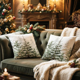 Christmas Tree Pillow Covers 18x18 Inch Set of 2 Green Christmas Rustic Decorative Throw Pillows Covers