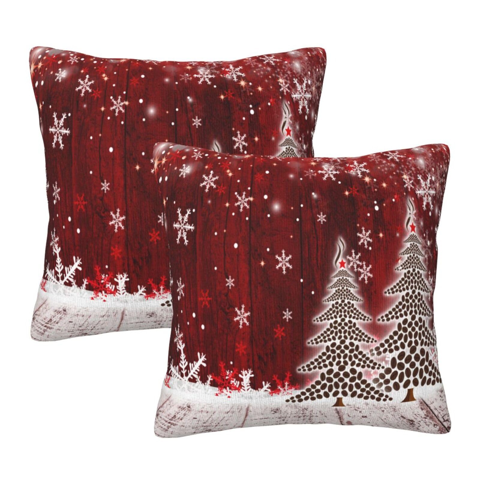 Pillow Covers Christmas Xmas Tree Snowflake Set of 2 Pillowcases Square Cushion Cover