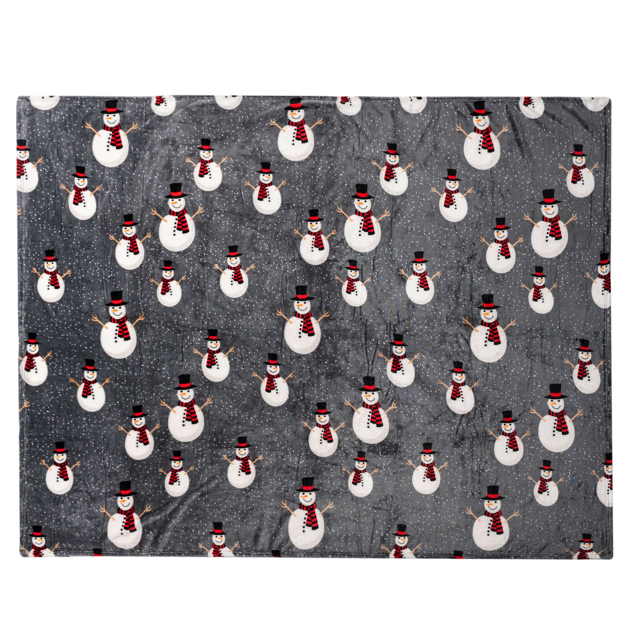 Christmas Snowman Throw Blanket | Grey Christmas Fleece Blanket | Soft, Plush, Warm Winter Cabin Throw, 50x60 (Grey Snowman)