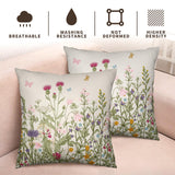 Spring Vintage Floral Pillow Covers 18x18 Set of 2 Sage Green Wildflower Plant