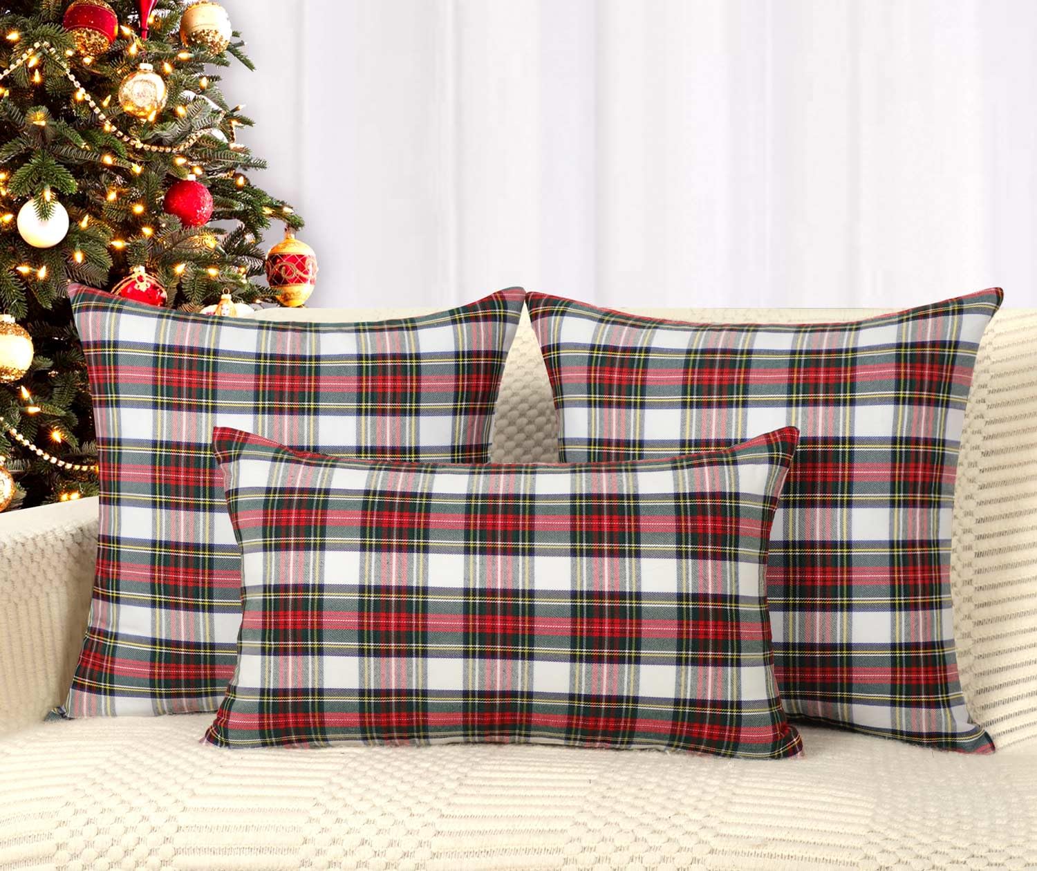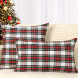 Set of 2 Christmas Scottish Tartan Plaid Throw Pillow Covers Cushion Case for Farmhouse Home Decor Red and White, 18 x 18 Inches