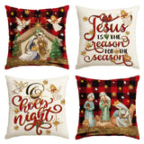 Set of 4 Christmas O Holy Night Jesus Cardinal Buffalo Plaid Throw Pillow Covers