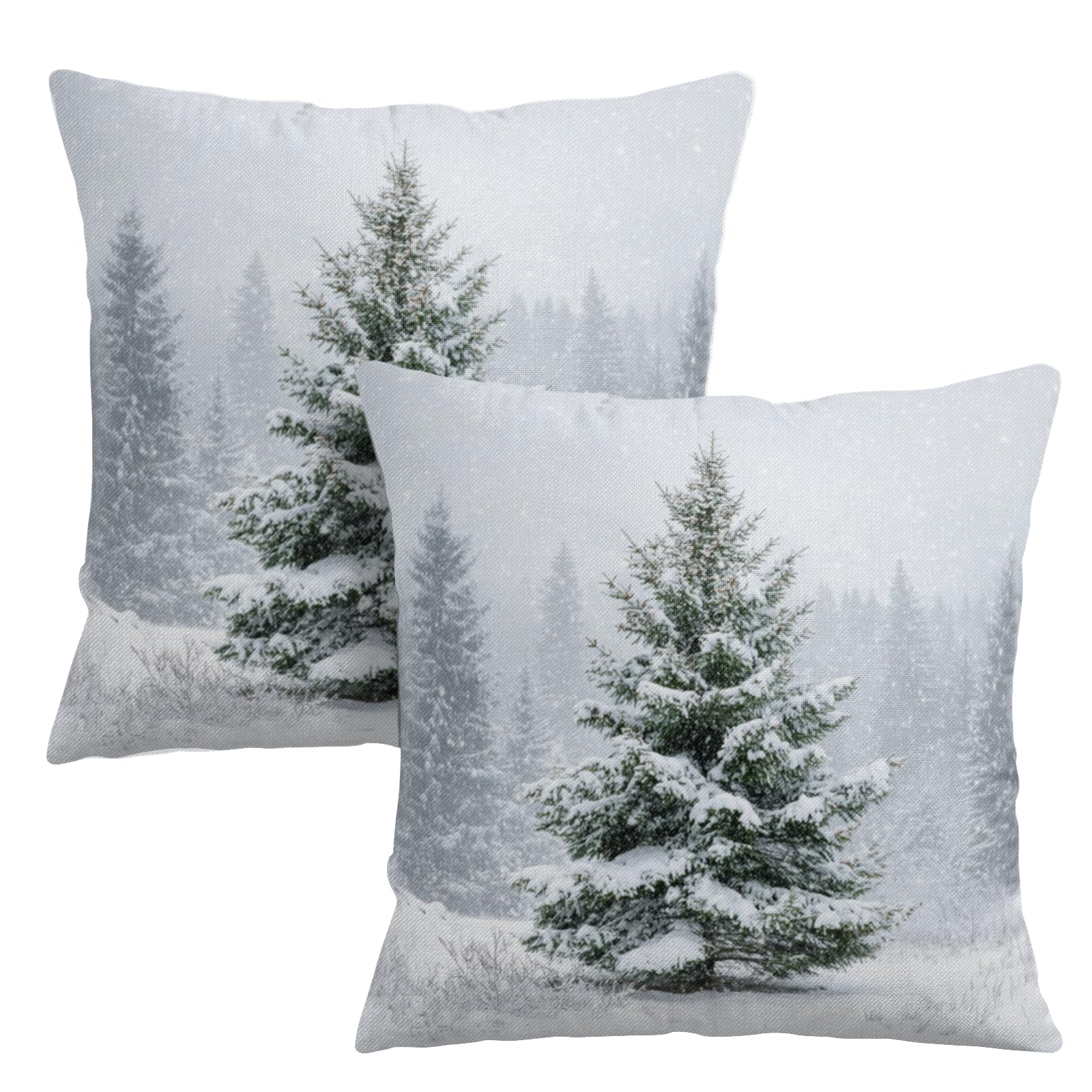 Winter Pillow Covers 18x18 Set of 2 Christmas Pine Tree Decorative