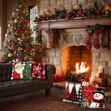 Christmas Throw Pillow Covers 18x18 Inch Set of 4, Square Winter Christmas Holiday Decorative Cushion Case for Sofa Living Room