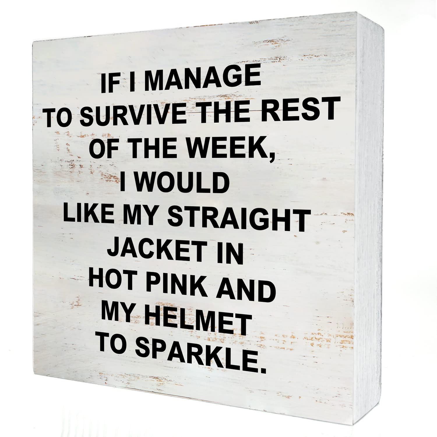 If I Manage to Survive the Rest of the Week Wooden Box Sign with Saying Desk Decor 5 x 5 Inch Funny Office Box Sign Wood Plaque Block Sign Rustic Home Office Decor Coworker Gift