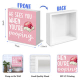 Funny Christmas Bathroom Wooden Box Signs, Christmas Funny Bathroom Decor, He Sees You When You're Pooping Wooden Signs for Restroom Shelf Table Decor, 5x5in (Pink)